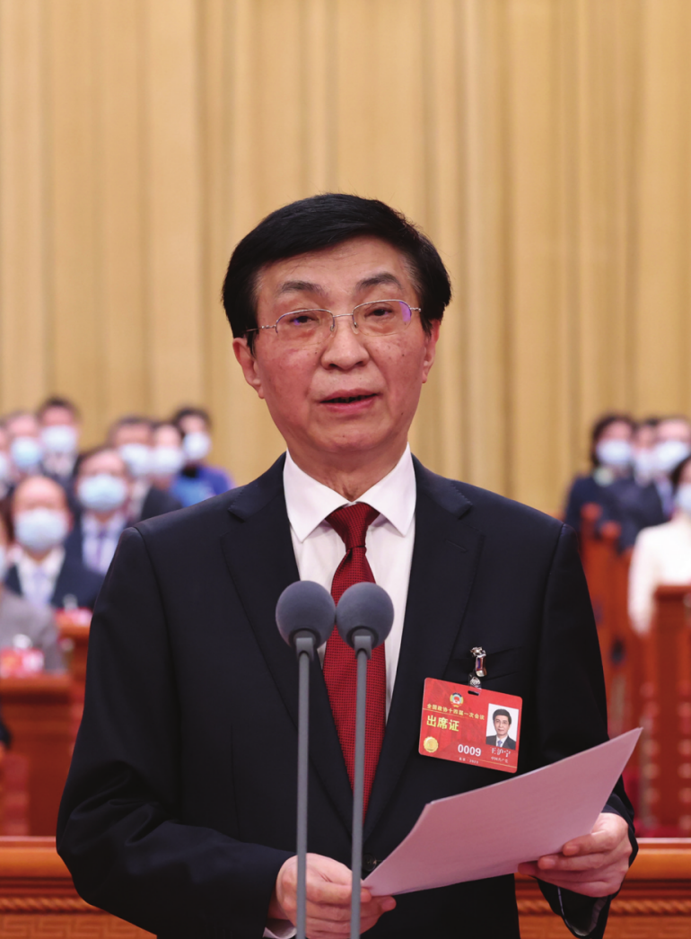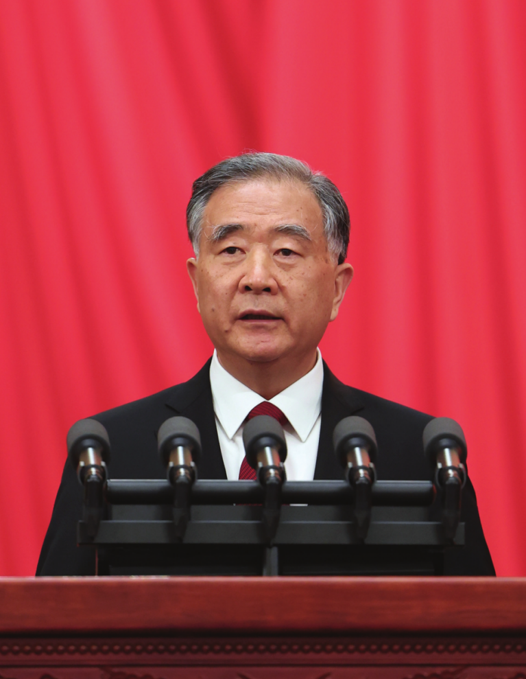下午3時,王滬寧宣布大會開幕,全體起立,高唱中華人民共和國國歌。