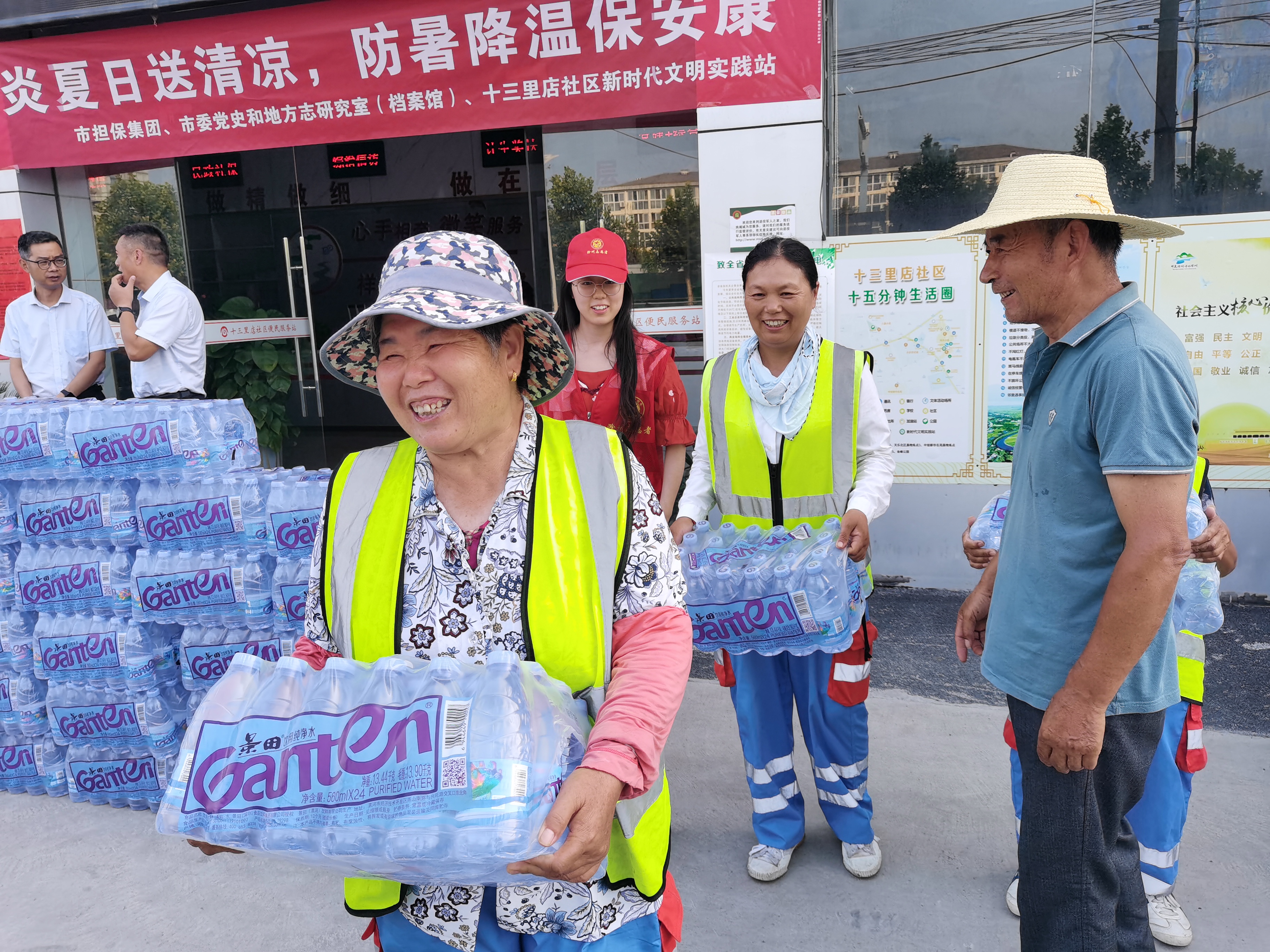 連日來,氣溫一直居高不下,處處熱浪滾滾,戶外作業(yè)的環(huán)衛(wèi)工人們頂烈日、冒酷暑,用辛勤的汗水換來干凈整潔的環(huán)境。為給他們送去一份清涼和關(guān)愛,市擔(dān)保集團第一、第二黨支部聯(lián)合市委黨史辦、十三里店社區(qū)黨組織共同開展以“ 炎炎夏日送清涼,防暑降溫保安康”為主題的夏送清涼主題黨日活動,有效推動黨群融合,持續(xù)推進“我為群眾辦實事 ”實踐活動走深走實。