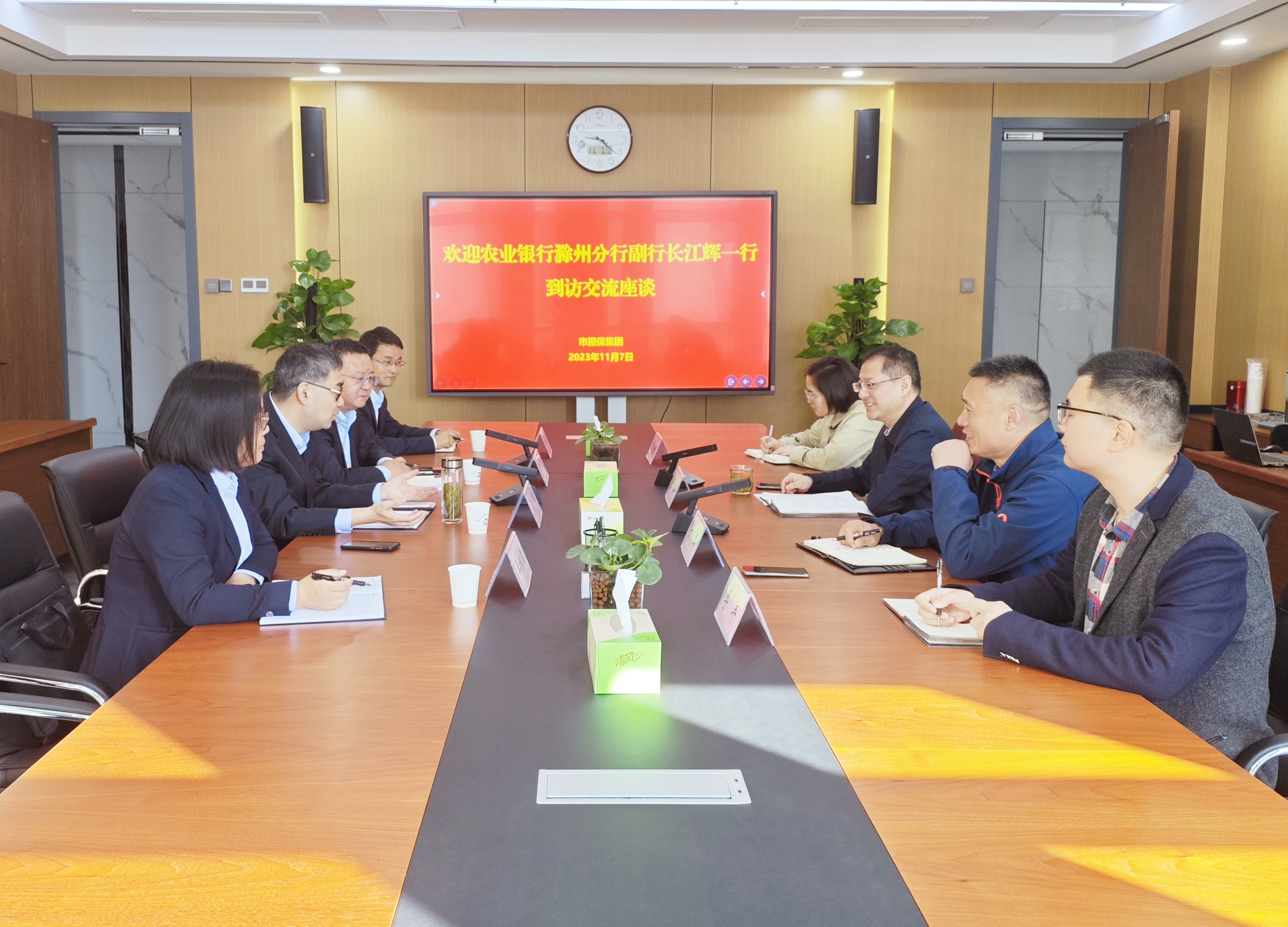 11月7日上午,農(nóng)業(yè)銀行滁州分行副行長江輝一行到訪集團交流座談,集團黨委委員、副總經(jīng)理張健及相關人員參加座談。
