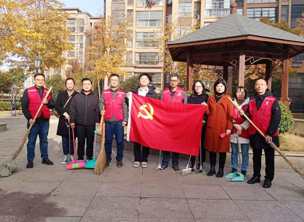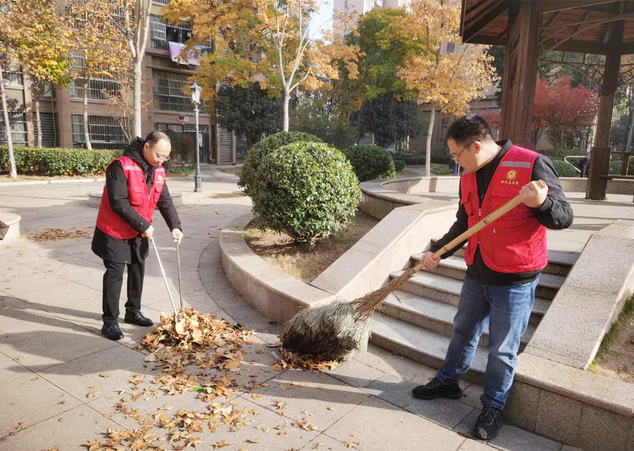 隨后黨員志愿者們身體力行,清掃小區(qū)廣場落葉,清除公共場所、內部道路、樓前屋后的垃圾,幫助社區(qū)做好環(huán)境衛(wèi)生清潔工作。