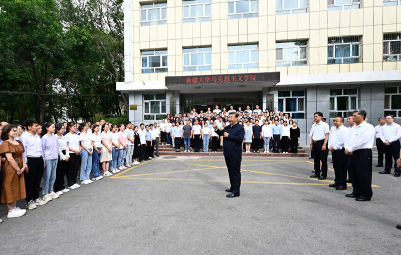 7月12日至15日,習(xí)近平在新疆維吾爾自治區(qū)黨委書記馬興瑞、自治區(qū)政府主席艾爾肯·吐尼亞孜陪同下,先后來(lái)到烏魯木齊、石河子、吐魯番等地,深入學(xué)校、國(guó)際陸港區(qū)、社區(qū)、博物館、農(nóng)村和新疆生產(chǎn)建設(shè)兵團(tuán)等進(jìn)行調(diào)研。